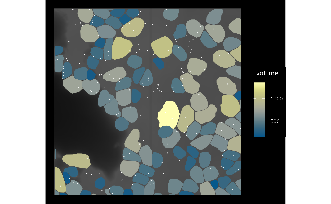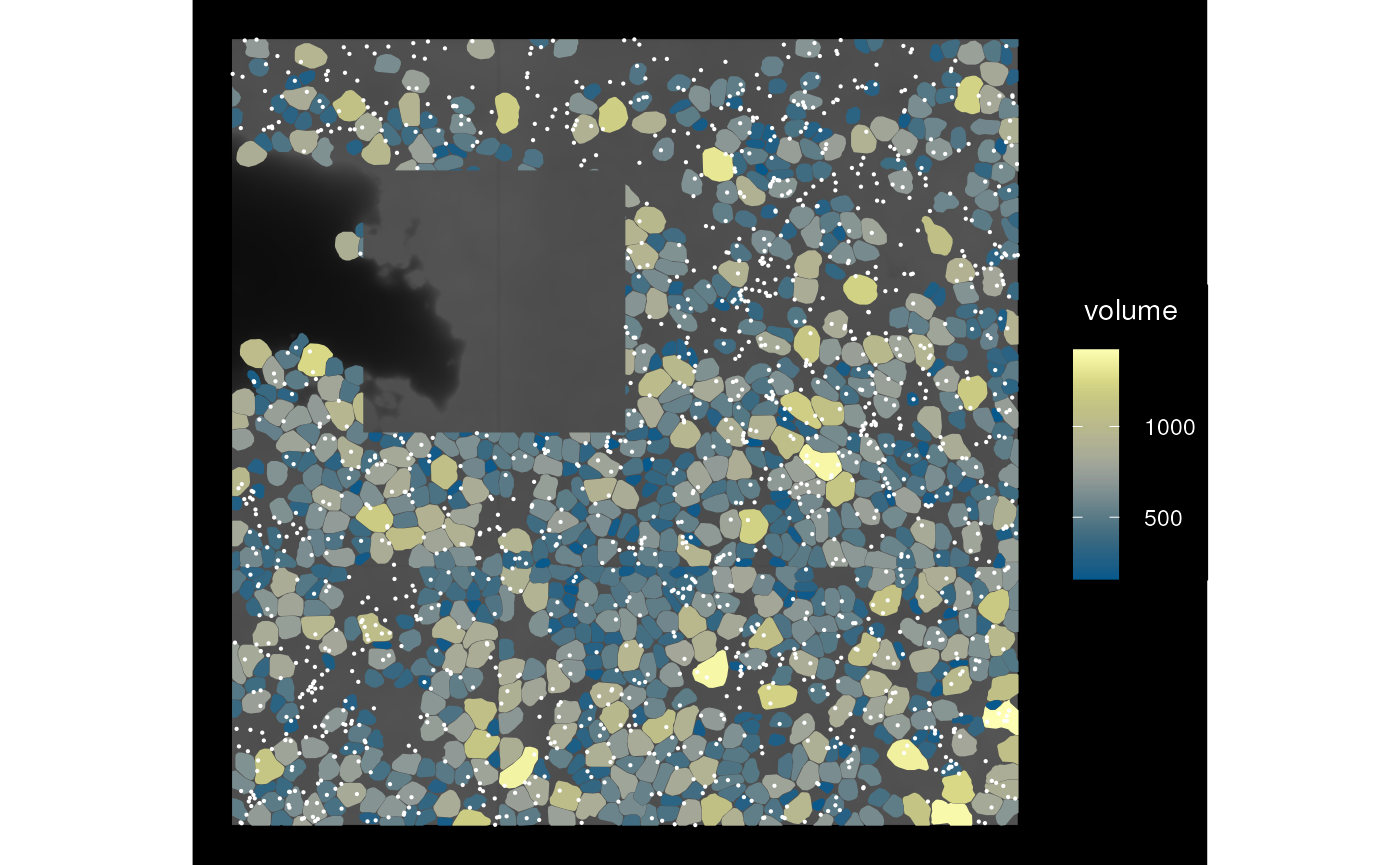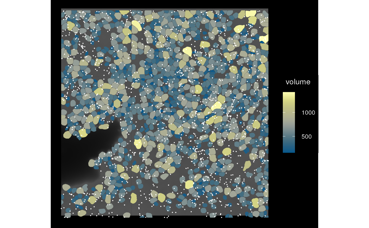 #> spatialCoords names(2) : pxl_col_in_fullres pxl_row_in_fullres